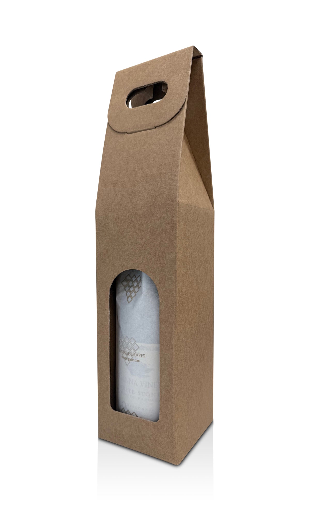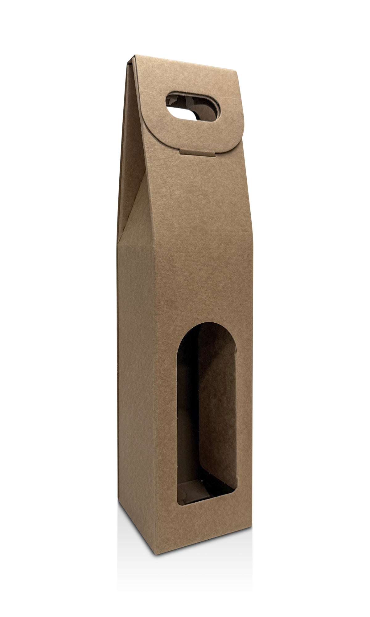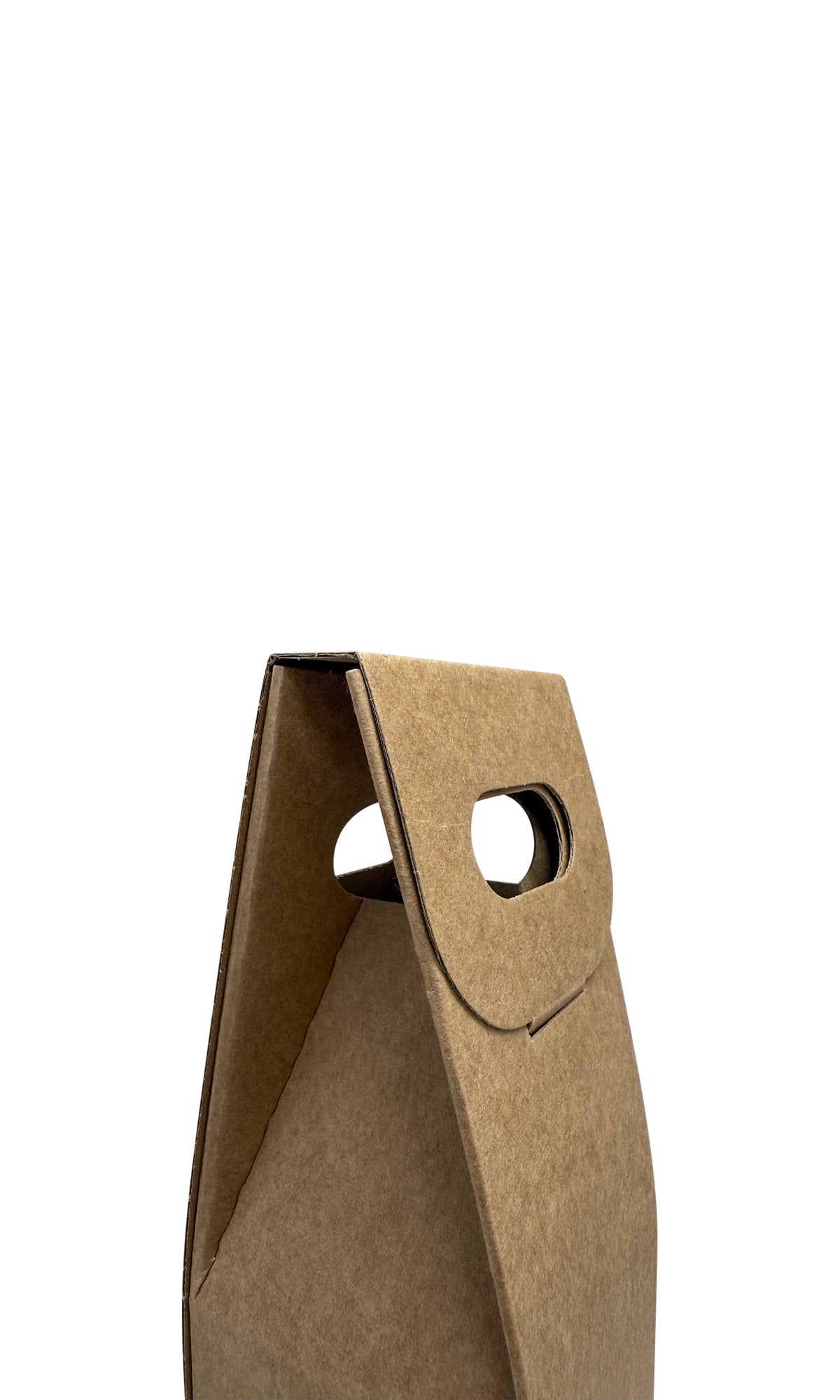 Eine Präsenttasche im Natur Design aus Pappe. Die faltbare Präsenttasche hat einen integrierten Tragegriff.