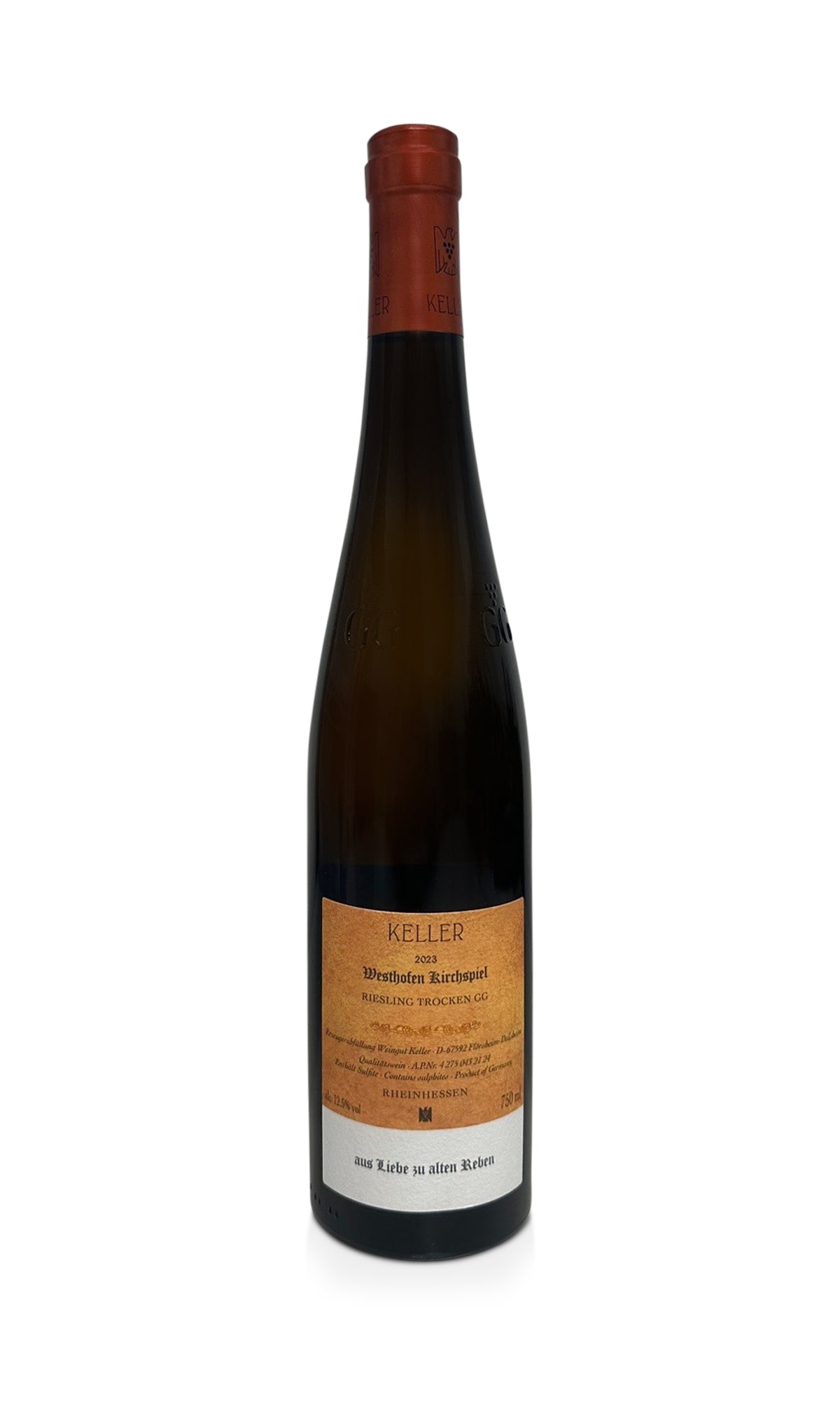 The Kirchspiel Riesling Großes Gewächs 2023 from Weingut Keller is a prime example of the unique quality of German Rieslings. The Kirchspiel, one of the top sites in Rheinhessen, is known for its special climatic conditions and calcareous soils, which lend the Riesling a fine minerality and elegance. The site benefits from optimal exposure to the sun and the cool winds from the Rhine Valley, which ensure slow ripening of the grapes and impart complexity and finesse to the wine.